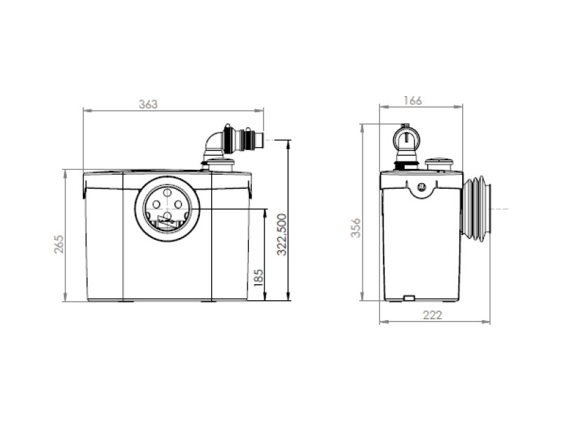 - Discharge pipe diameter (mm): 22 / 28 / 32
